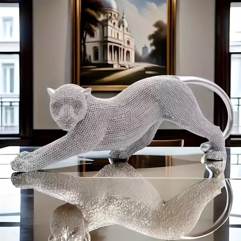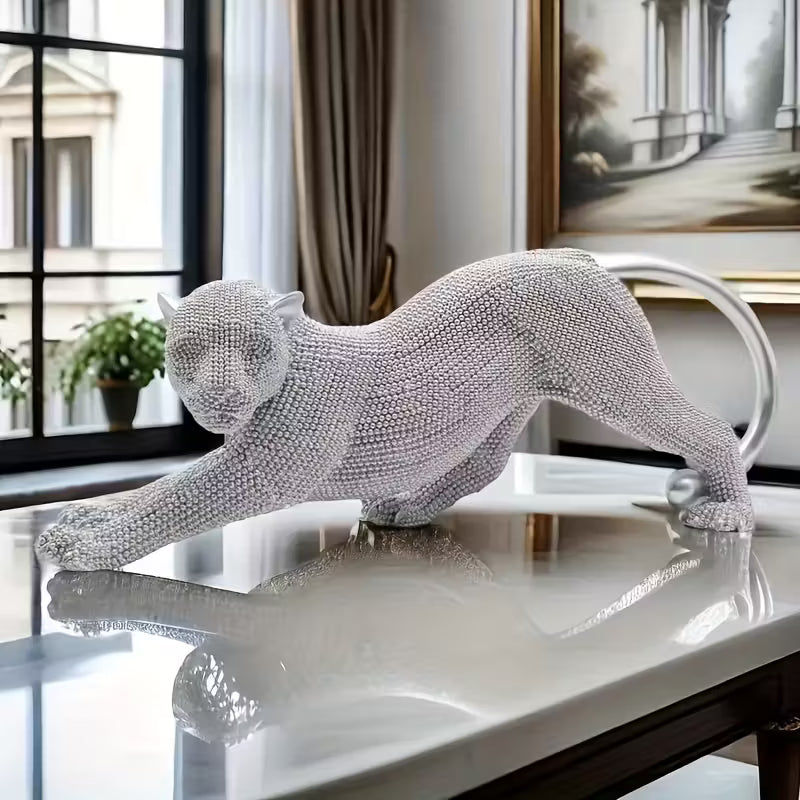 Скульптура Серебристого Леопарда с Бусинами для Декора