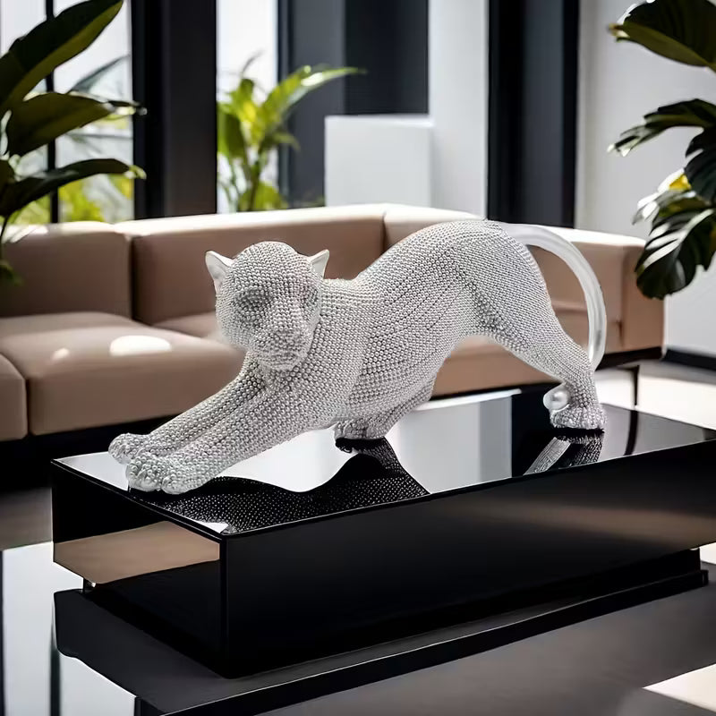 Каждая деталь проработана с мастерством, что позволяет подчеркнуть динамичность и величие этого прекрасного хищника. Идеально подходит для современных интерьеров, она станет привлекательным элементом декора в гостиной, столовой или даже в офисе. Добавьте в свой интерьер не только красоту, но и символ свободы и силы с этой утонченной скульптурой леопарда.