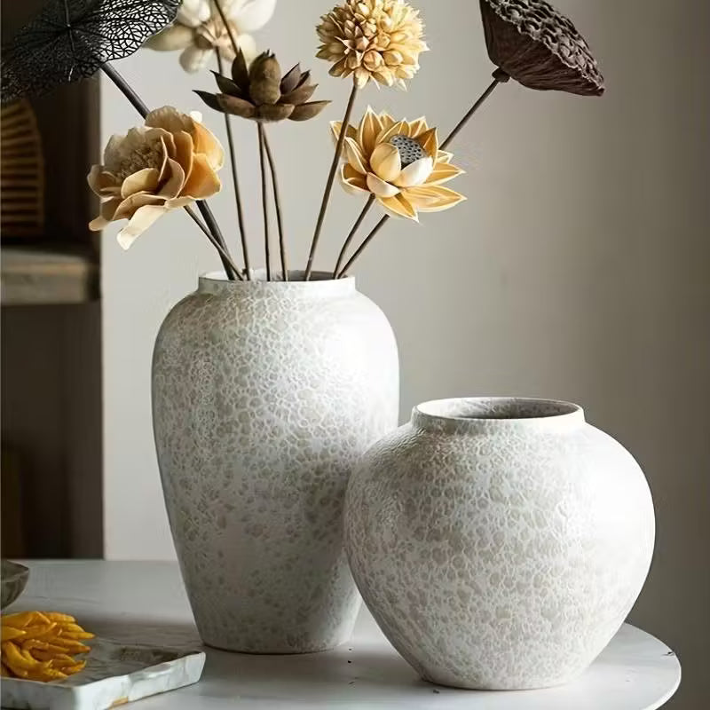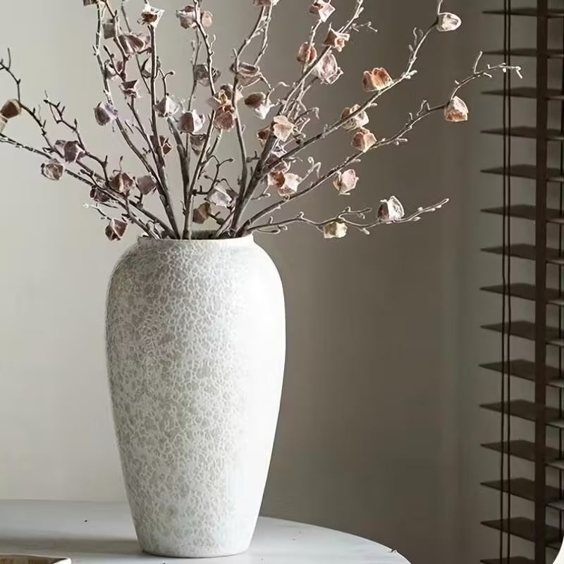 Элегантная Белая Керамическая Ваза с Большим Текстурированным Дизайном